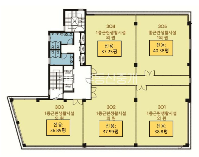 - 302호 / 계약면적 238.33m2 / 전용면적 125.58m2 / 임대료 380만원 별도